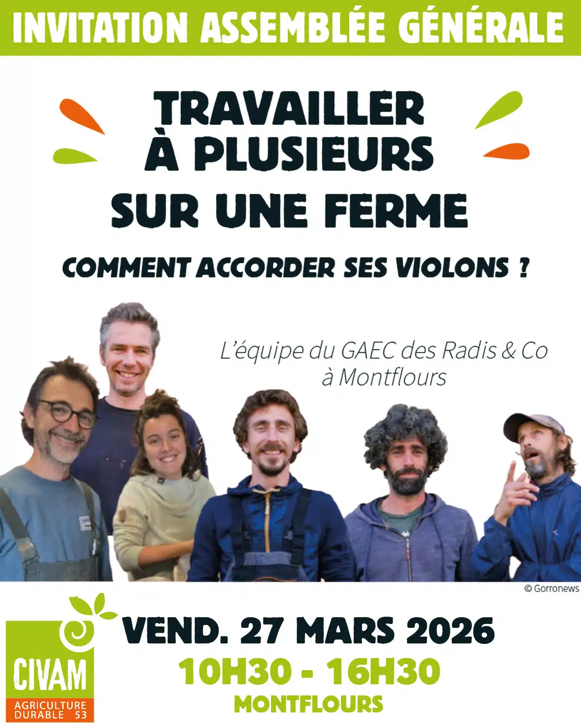 17h30 : Marché des producteurs.trices de Montflours dans le bourg (suite à l’AG pour celles et ceux qui le souhaitent).