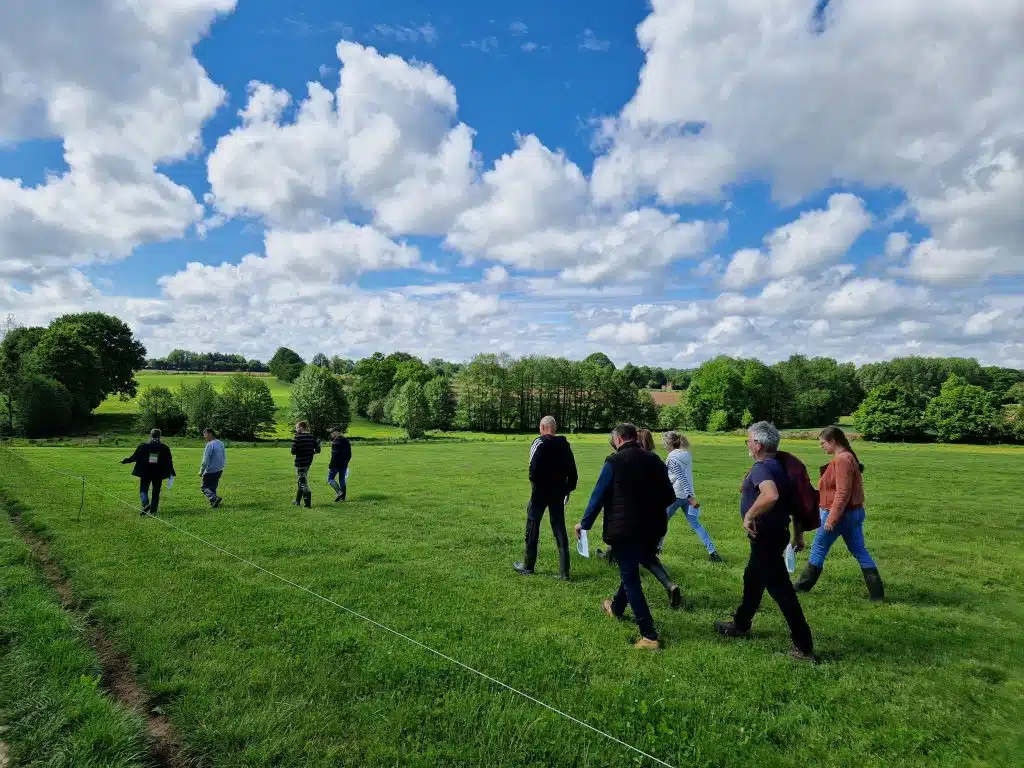 Pour la 4ème rencontre de l’année le groupe sud a visité la ferme de Ludovic Guion à St Quentin les anges. C’est sous le soleil que la journée a eu lieu, les faibles précipitations de mars et avril commencent à se faire ressentir sur la pousse des prairies, mais c’était aussi l’occasion d’échanger sur le passage en monotraite de Ludovic. Le groupe Nord lui s’est rendu sur la ferme de Laurence et Christophe Mongodin à Colombiers du Plessis, le groupe a traversé des prairies en pleine production mais là aussi freinées par le manque d’eau. Les échanges ont tourné sur les adaptations possibles en cas de sécheresse.